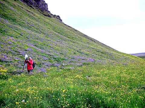 Höfðabrekka 中心の斜面