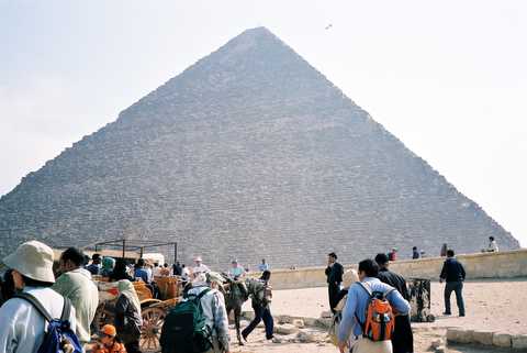 因第一天被包車的司機「拐」去騎駱駝,害我們無法好好「近玩」金字塔,還好有多排一天的預備,之後的行程也都順利進行,於是,在埃及的最後一天,又去拜訪金字塔。這次決定自己去。